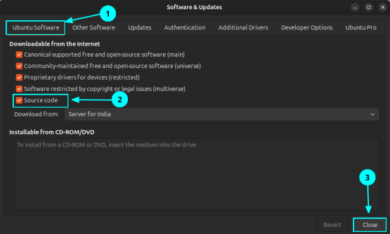 | 1 | Enable Source code in Software & Updates |