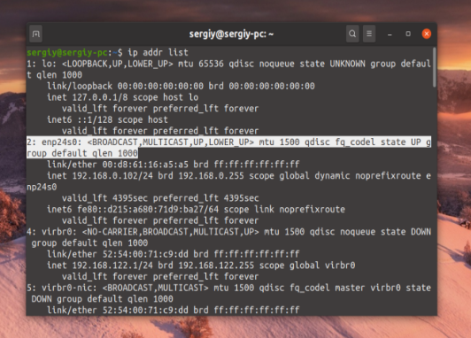 ip addr show enp24s0