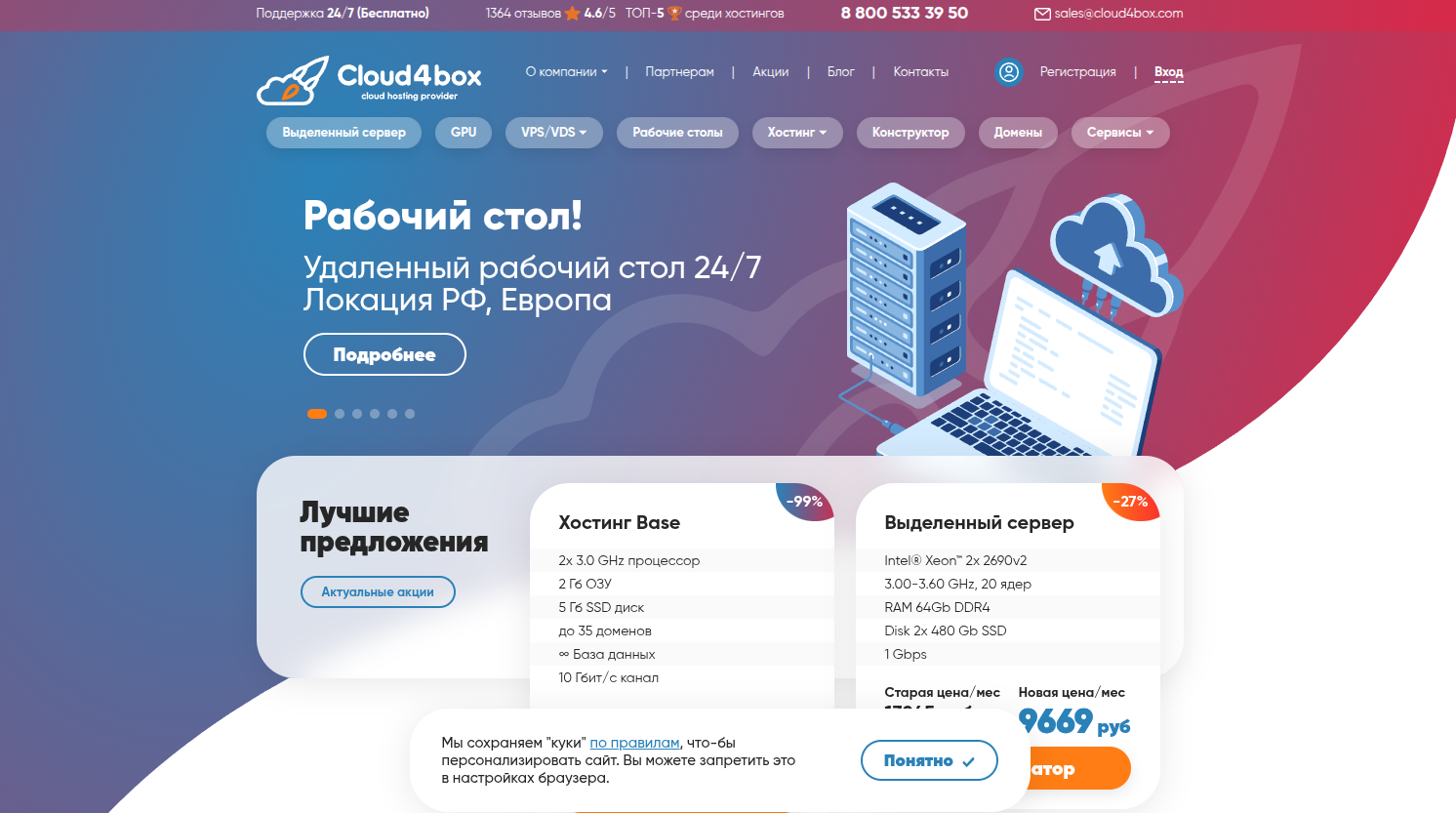 Cloud4box — провайдер, у которого можно собрать нужный формат размещения под сайт, сервис или внутренние задачи компании: от классического веб-хостинга до аренды виртуальных и выделенных серверов, а также сопутствующих сервисов.