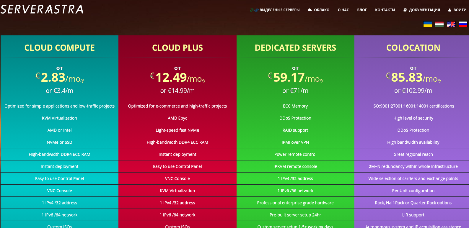 ServerAstra è un provider europeo di VPS cloud e server dedicati con collocazione principale a Budapest e una posizione aggiuntiva negli Stati Uniti. Il servizio utilizza KVM e SSD o NVMe, offre pagamenti mensili e la possibilità di scalare le risorse man mano che il progetto cresce. Il formato di assistenza e supporto è progettato per le tipiche attività server, con backup e protezione aggiuntiva attivabili su richiesta.