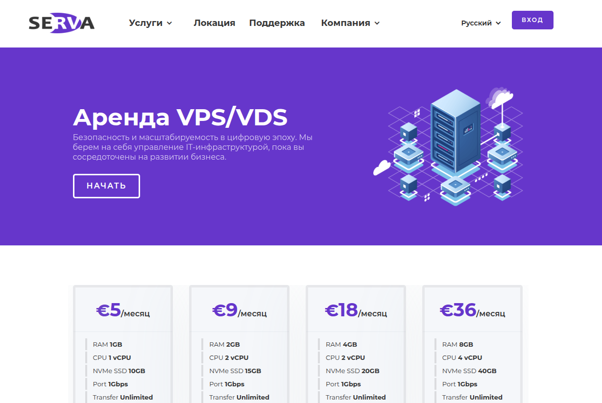 Serva — VPS-хостинг с европейскими локациями и площадкой в США